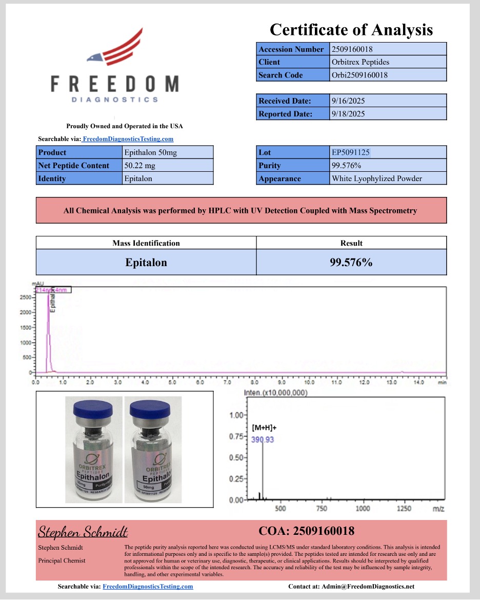 This is precisely why we guarantee that every single batch of our Epithalon 10mg Peptide undergoes the most rigorous, independent third-party testing available before it is ever cleared for distribution to the scientific community.